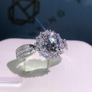 Moissanite 18K White Gold Three-Row Diamond Ring for Women | Elegant & Luxurious Engagement Ring
